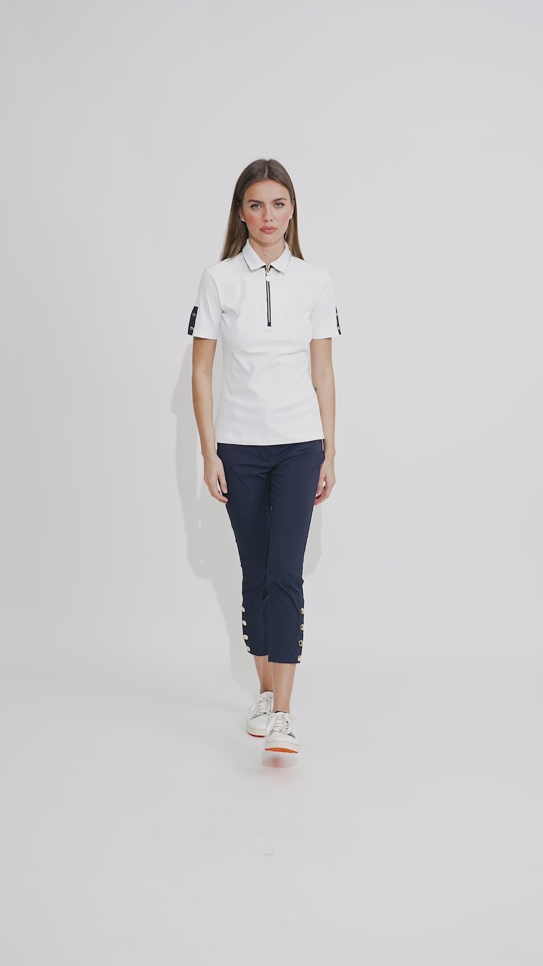 Bettina 7/8 Crop Pant with Riri zipper hem in Black ( Shown in white)