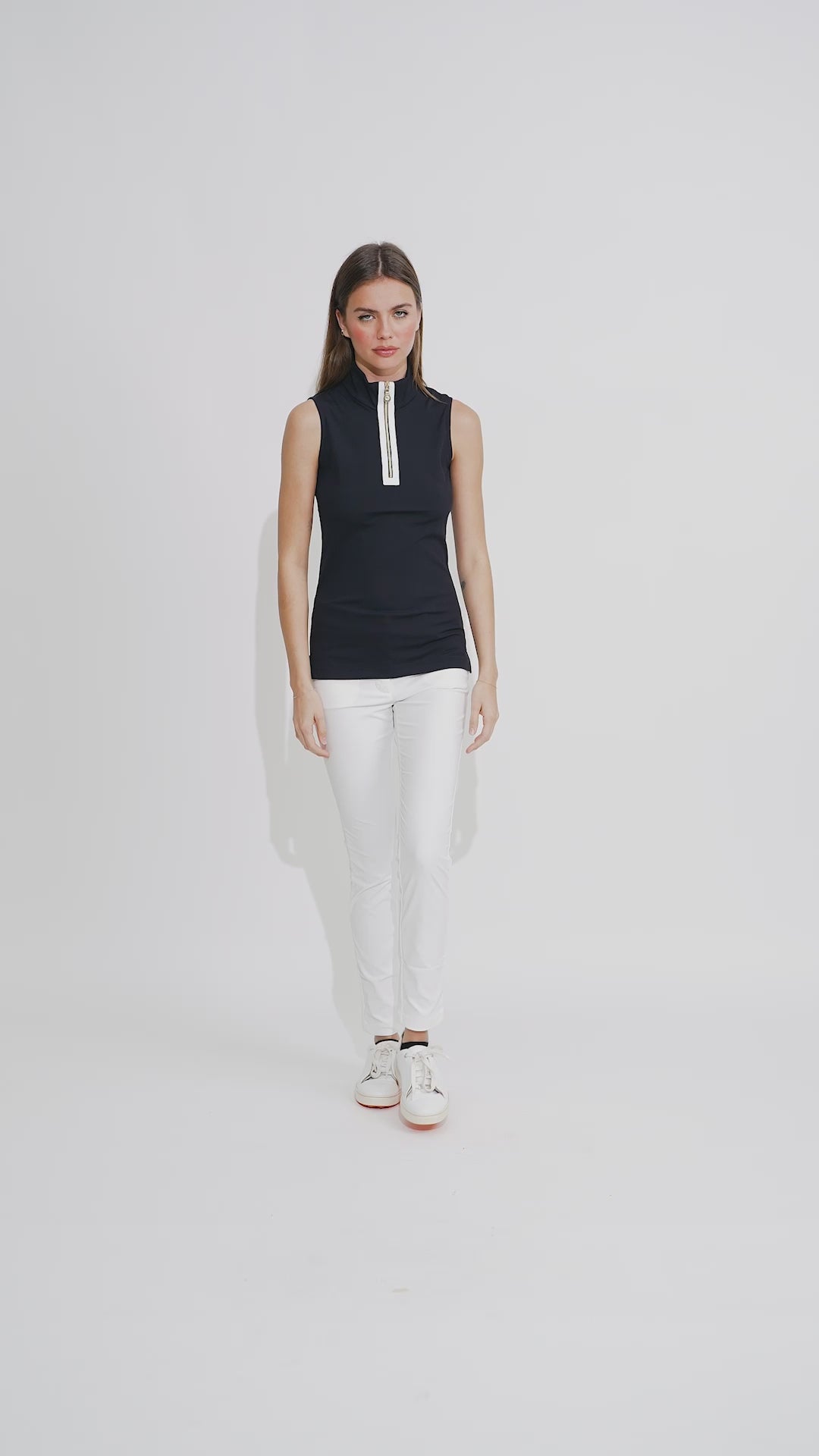CLIO 1/4 Zip Sleeveless Top in Rib Jersey white-black