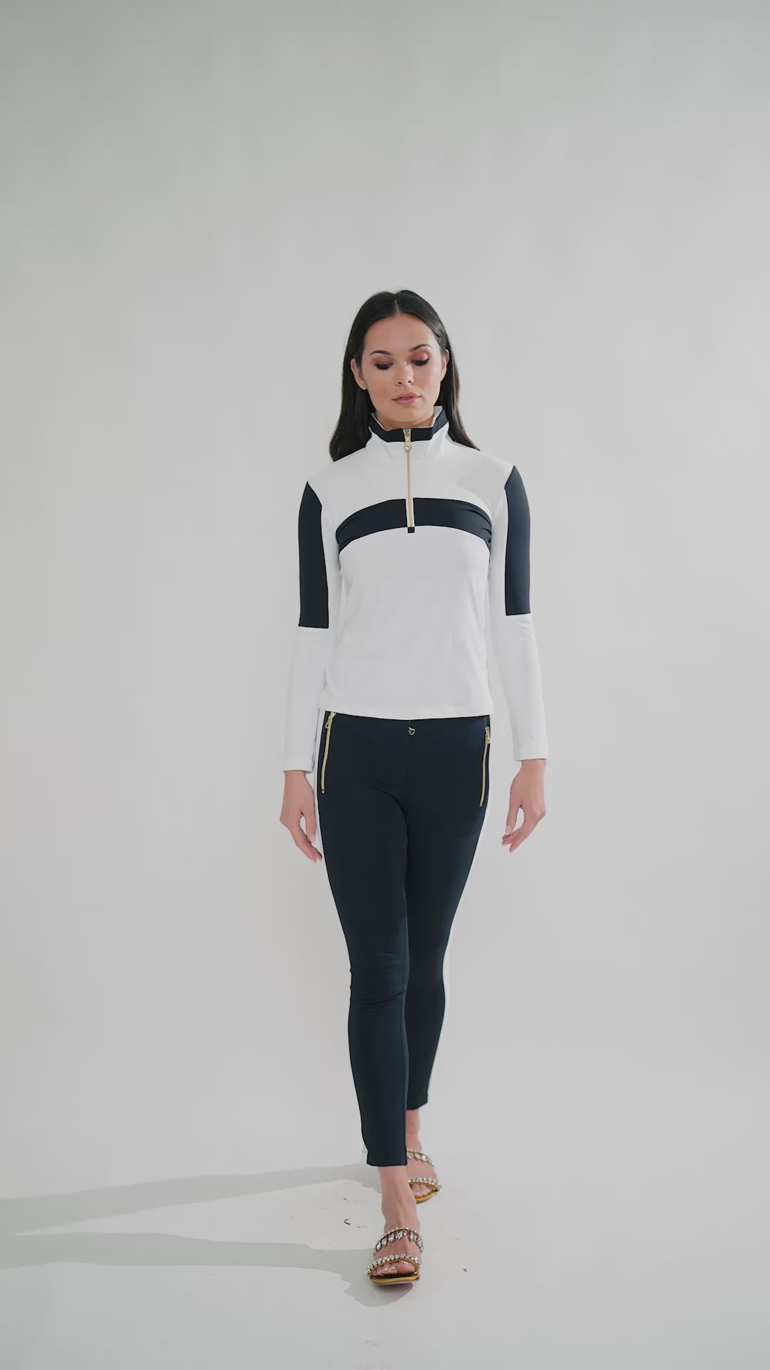 Alessa Long Sleeve 1/4 Zip Top in White/Black Microfiber