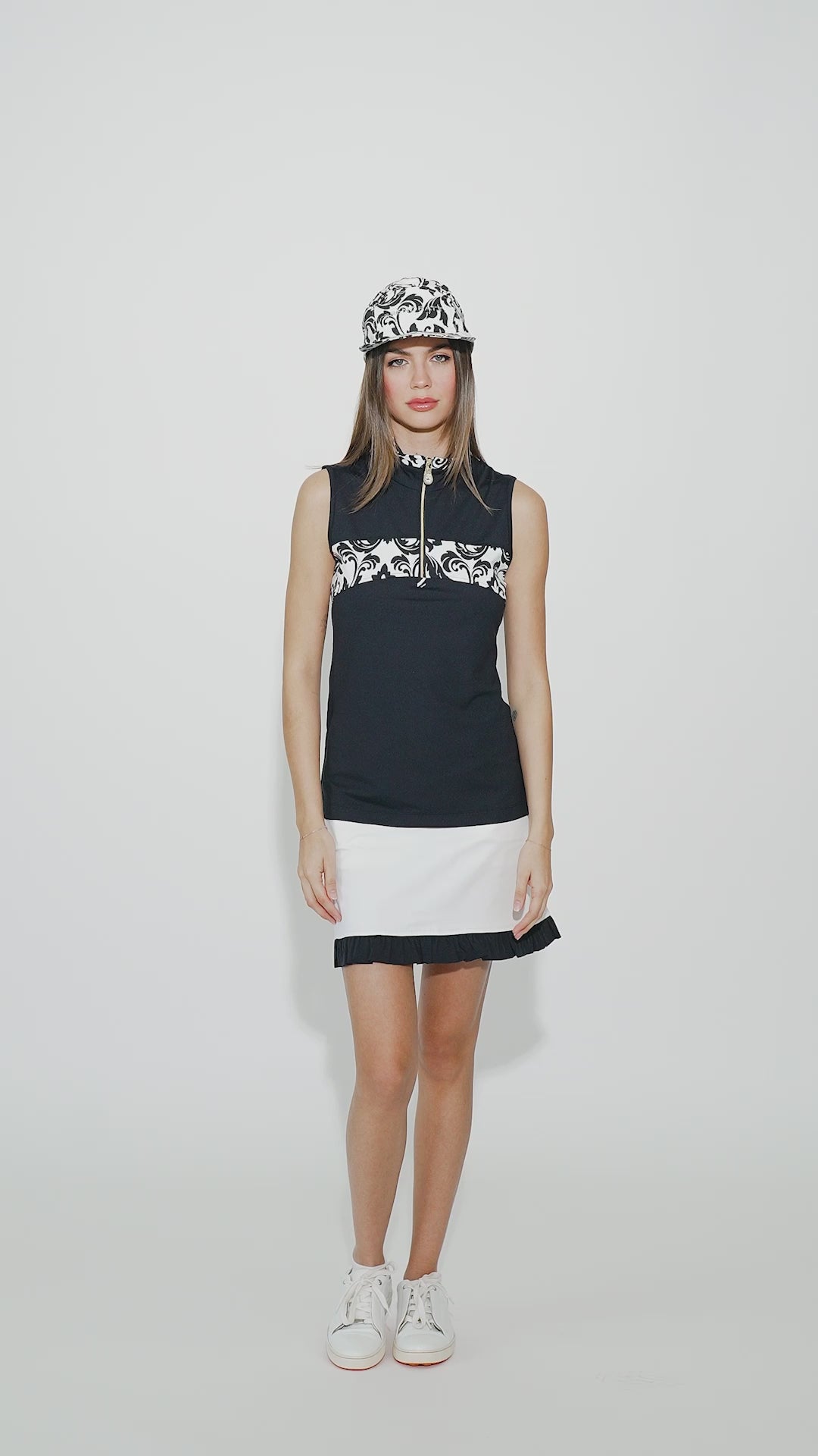 Alisa Ruffle Skort in White-Black edge Ruffle
