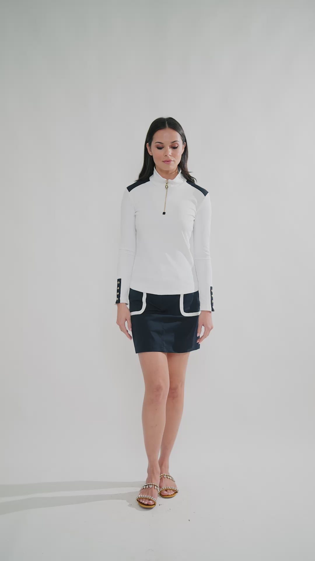 Indulge in luxury with our AVIA skort. Made in Italy from the finest Italian fabric, this woven bi stretch skirt features contrast outline pockets for a touch of sophistication. Elevate your look with this exclusive piece, crafted with the highest quality materials.