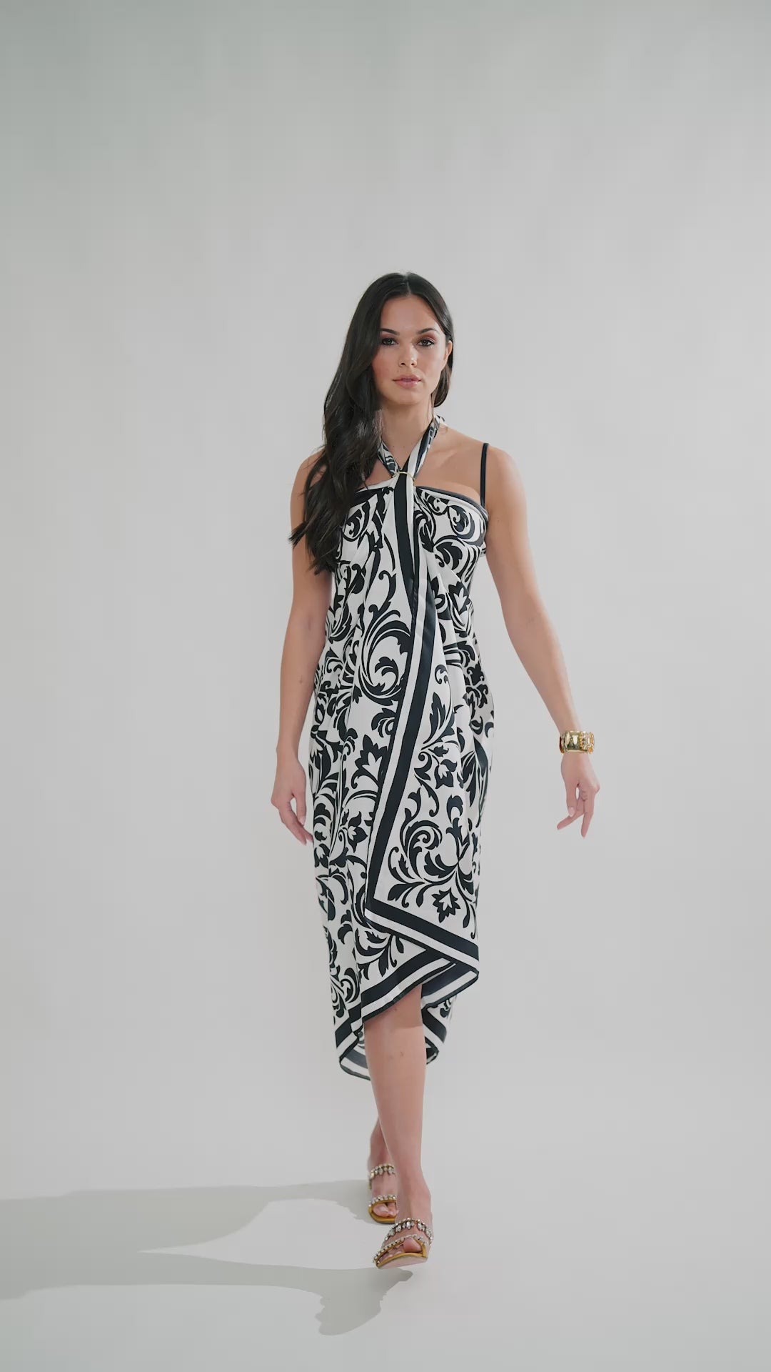 Capri Sarong in Italian Printed Silk, Black Renaissance