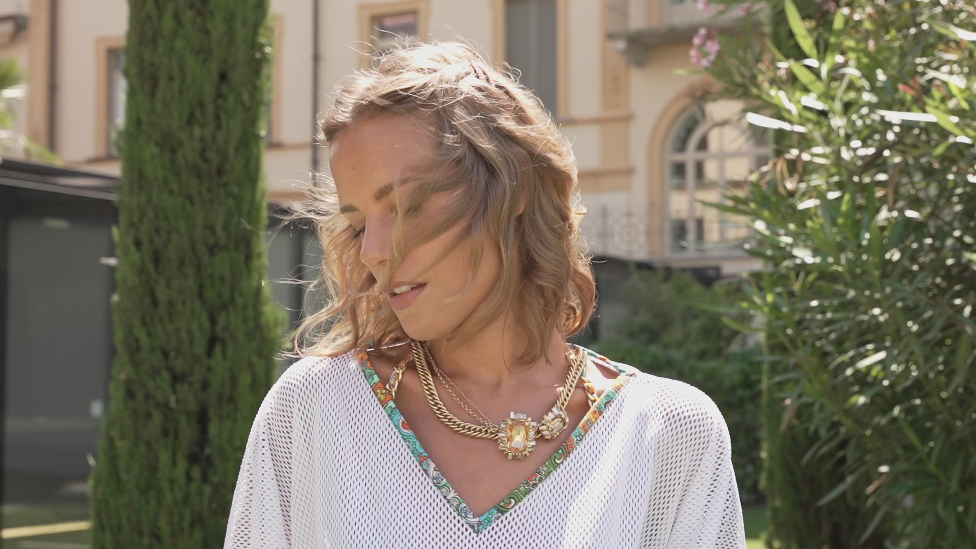 Luxury awaits in our Firenze Cape Top with Utility Pocket in white Italian Lycra mesh & Aqua Jewels: the perfect piece for hot weather. Crafted with luxurious 100% Italian lycra, it will keep you cool while its chic cape sleeve design and curve back panel allow for fresh air to flow. The V-neck, trimmed with coordinating print details, adds designer flair to this loose-fitting and comfortable top. Plus, the utility pocket on the front is perfect for all your belongings.