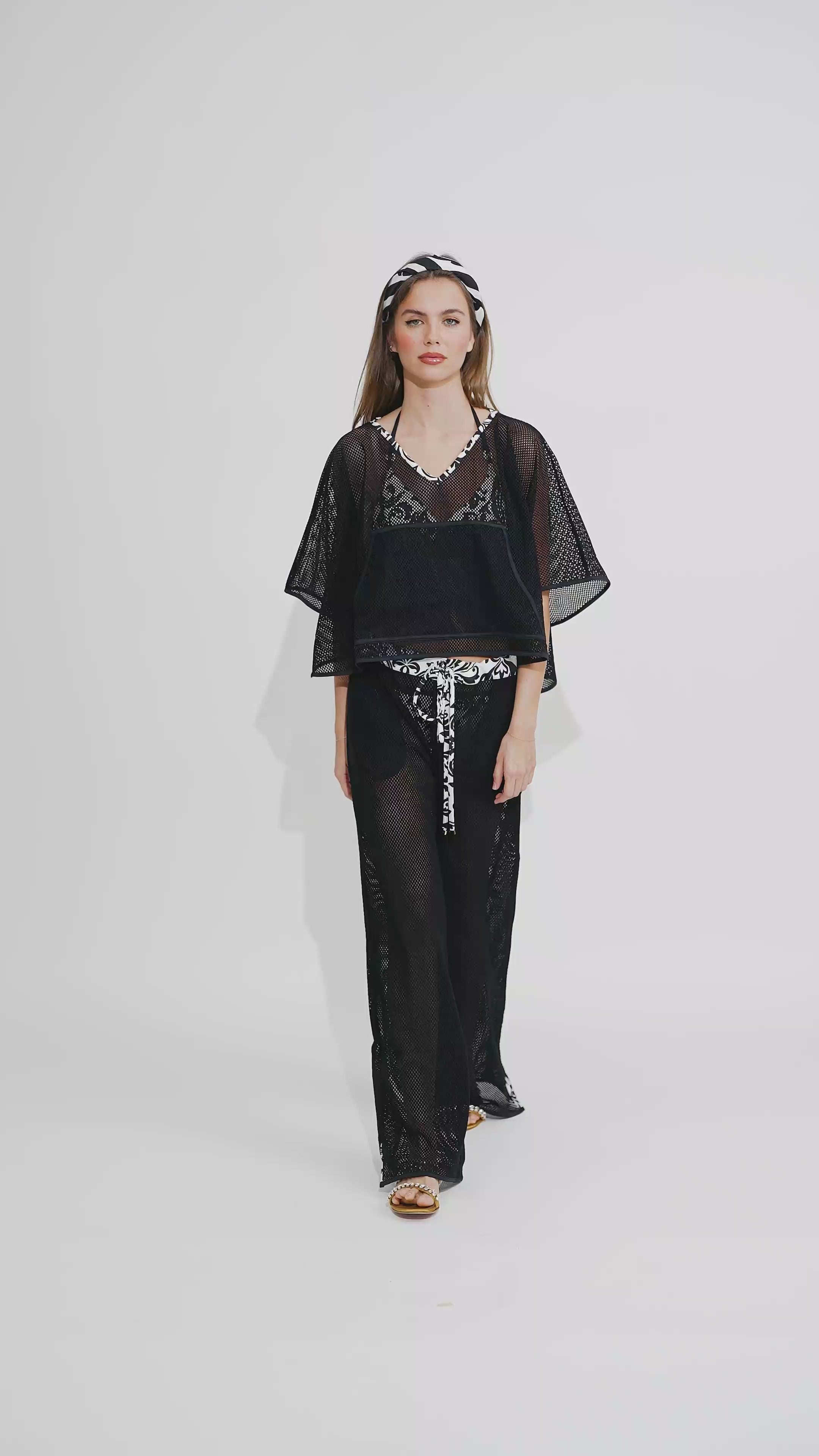Portofino Net Lounge Pant with pockets in Black/Blk +Wht