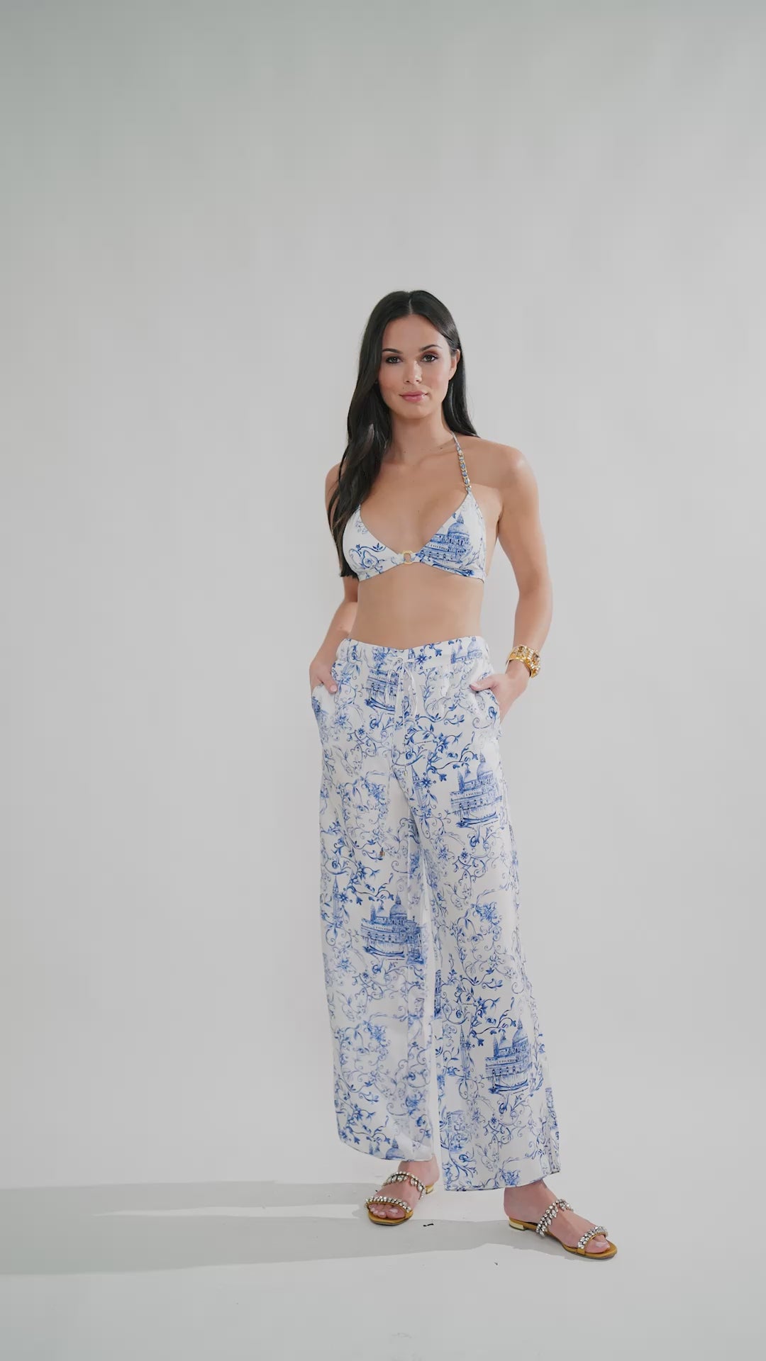 Portofino Silk Pants, in Venezia Print Made In Italy